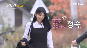 결혼에 진심인 열정과 냉정 사이의 정숙님이라는 제작진의 평입니다. 이미 사전 인터뷰에서 결혼을 빨리 할 줄 알고 25살에 자가 아파트까지 마련해 뒀다고 했는데요, 그래서 나는 솔로도 나오셨겠죠? 하지만 냉정과 열정 사이라는 말, 약간 원래 갖고 계신 철벽의 습관이 자주 튀어나온 게 아닐까 싶습니다. 엄청 잘해주거나 엄청 냉정하게 굴거나 그러신 편이거나, 아님 1놈만 패신 듯.