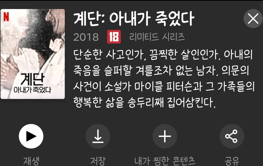 계단에서 굴러떨여져 죽은 아내. 남편과 아내는 사이 좋은 잉꼬부부였는데요, 경찰은 남편을 유력한 용의자로 지목합니다. 수사가 진행될수록 새롭게 발견되는 살해 동기 하지만 살인 증거 발견이 쉽지 않은데요. 남편은 과연 아내를 죽였을까요. 끝까지 알듯 말듯한 남편의 진짜 모습. 끝까지 추리하면서 보시면 흥미를 더하실 수 있을 겁니다.
