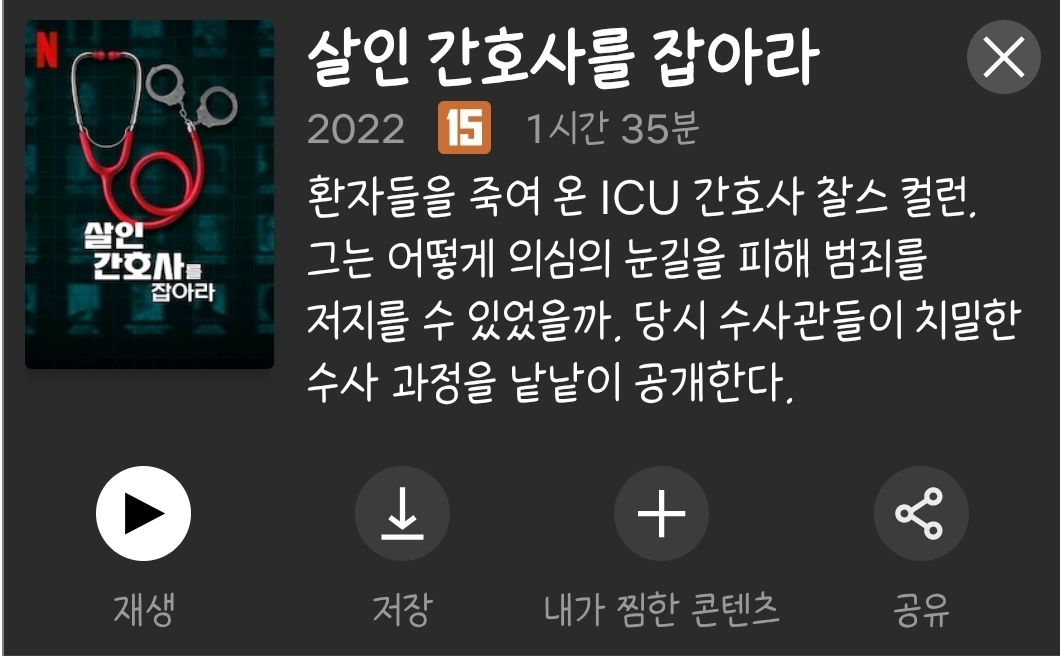 헌신적이고 친절한 남자 간호사, 동료들에게도 깊은 신임과 상냥한 이 간호사가 맡은 환자들이 자꾸만 숨을 거두게 됩니다. 살고자 병원을 찾아 입원한 환자들을 죽인 건 간호사. 간호사는 왜 환자를 죽였을까요. 알고보니 이 간호사는 이런 일이 처음이 아닙니다. 대체 언제부터 시작되서 얼마나 많은 사람이 죽어나간 걸까요.