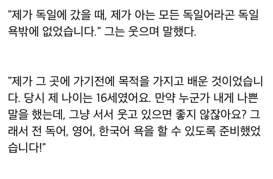 어린 시절 독일에서 상상하지도 못할 인종차별을 겪는