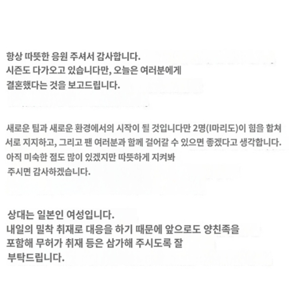 상대는 일본인 여성으로 본래 계획보다 3년이 늦어진 지금에서야 가족들끼리 비밀 결혼식을 했다고 합니다.