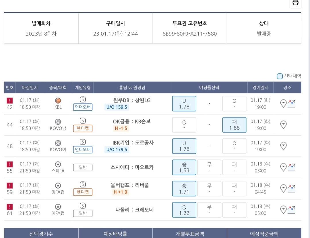 베팅은 어디까지나 본인 선택입니다. (남자배구는 어찌될지 모르니 일단 삭제!! ㅠㅠㅠㅠ)