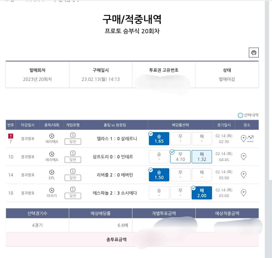 배당이 가장 낮은 인터밀란이 이기지 못했어요.ㅠㅠ 아쉽습니다.