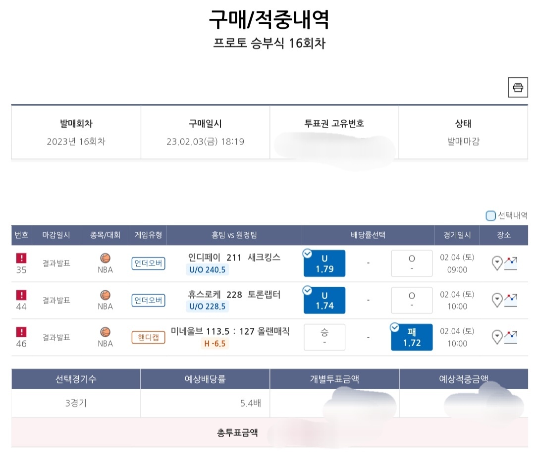 좀아까 오후 2시 경기 벳 올렸습니다. 오후 4시 경기 가봅니다. 먼저 오전에 NBA 경기 3경기 적중입니다. 아쉽게도 공유하지는 못했습니다. 휴스턴과 토론토가 쉽게 언더로 갈 줄 알았는데 4 쿼터에 엄청 넣었네요. 그래도 적중했습니다.