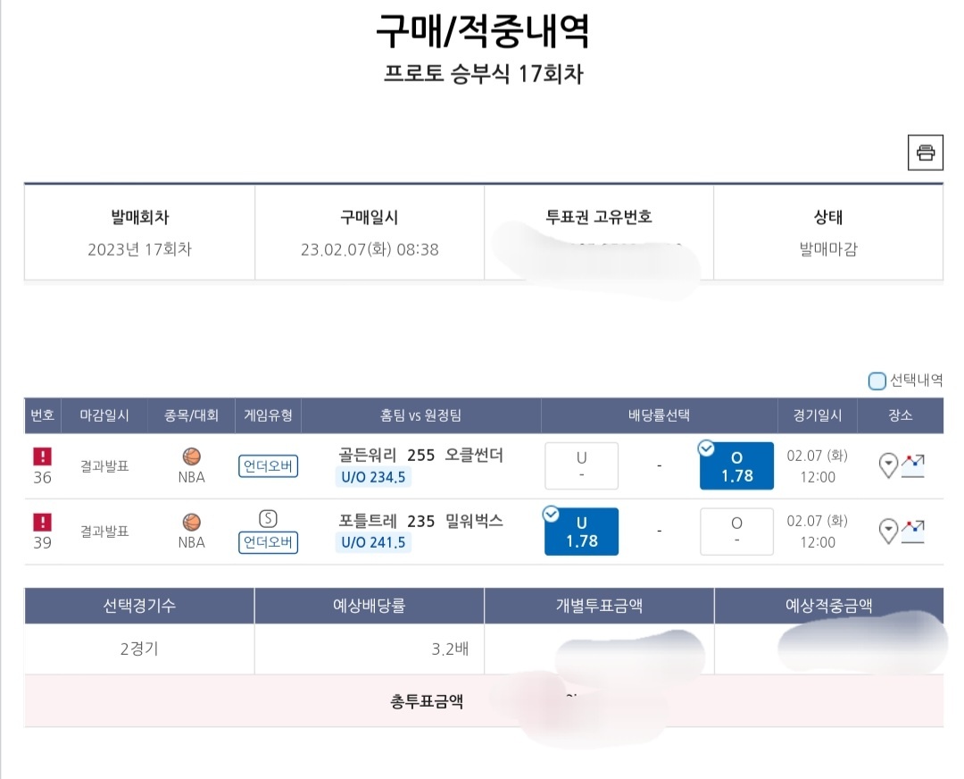 하지만, 오전에 NBA 언오버 두 경기 했는데요. 적중했습니다. ^^