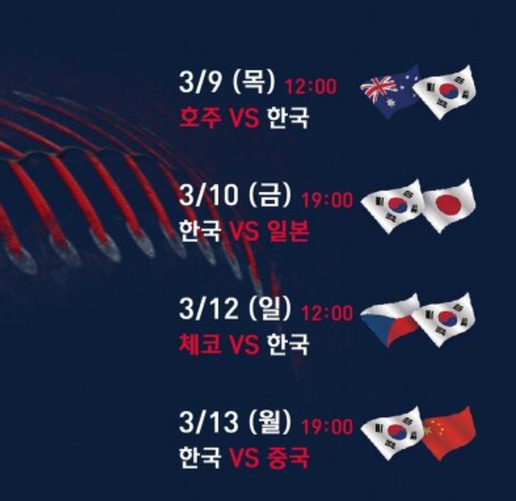 | 2023.3.10.금.오후 19:00 | 한국vs일본 | |